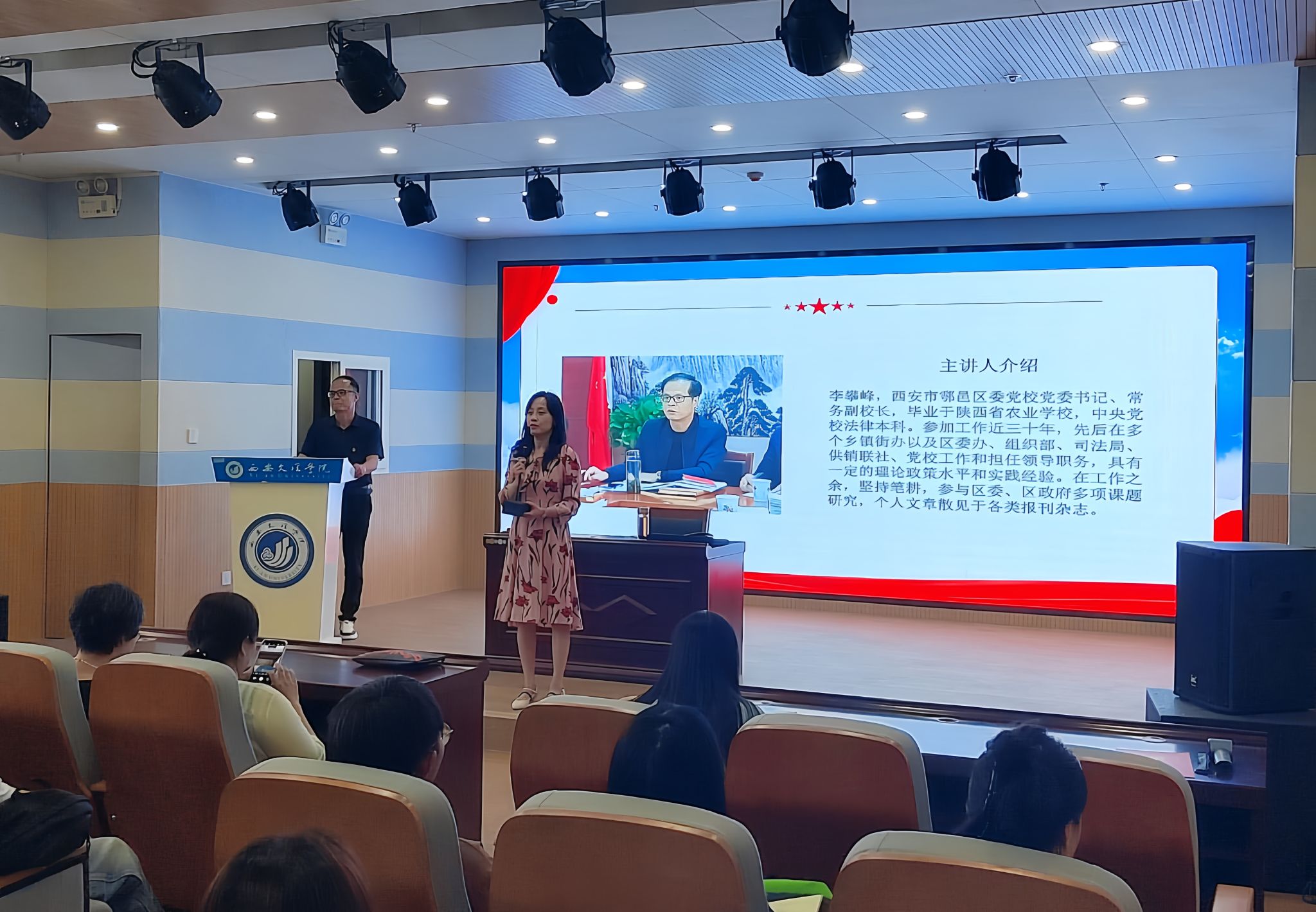 为深入学习贯彻习近平总书记关于党纪学习教育的重要讲话精神和重要指示精神,文学院党总支联合音乐学院、历史文化旅游学院、经济管理学院、外国语学院,于5月22日下午在明德楼c0415召开“强党性 守党纪 善修身”党纪学习教育专题党课。本次党课由西安市鄠邑区党校党委书记、常务副校长李攀峰主讲,文学院党总支书记李莎莎主持,教师、学生党员代表共计120人参会。本次专题党课以“秦岭之诫”为切入点,深入探讨了如何加强党员的党纪意识和个人修养。...