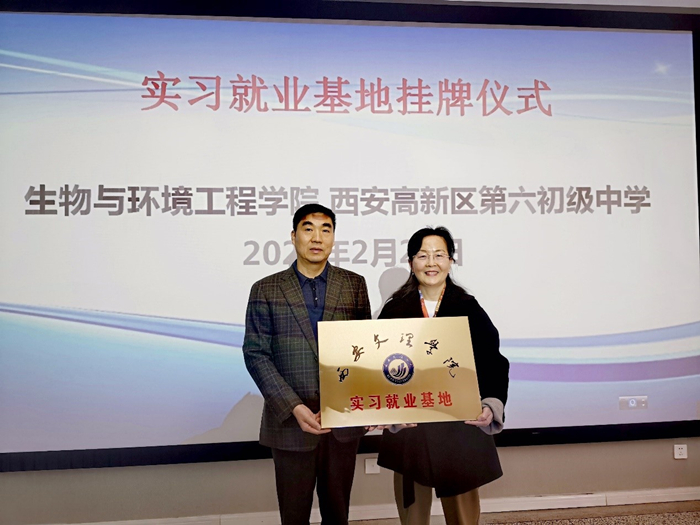 2月28日下午,生物与环境工程学院与西安高新区第六初级中学合作共建实习就业基地签约挂牌仪式在学院会议室举行。高新区第六初级中学执行校长陈盼莹一行4人,生物与环境工程学院领导班子成员、生物科学(师范教育方向...