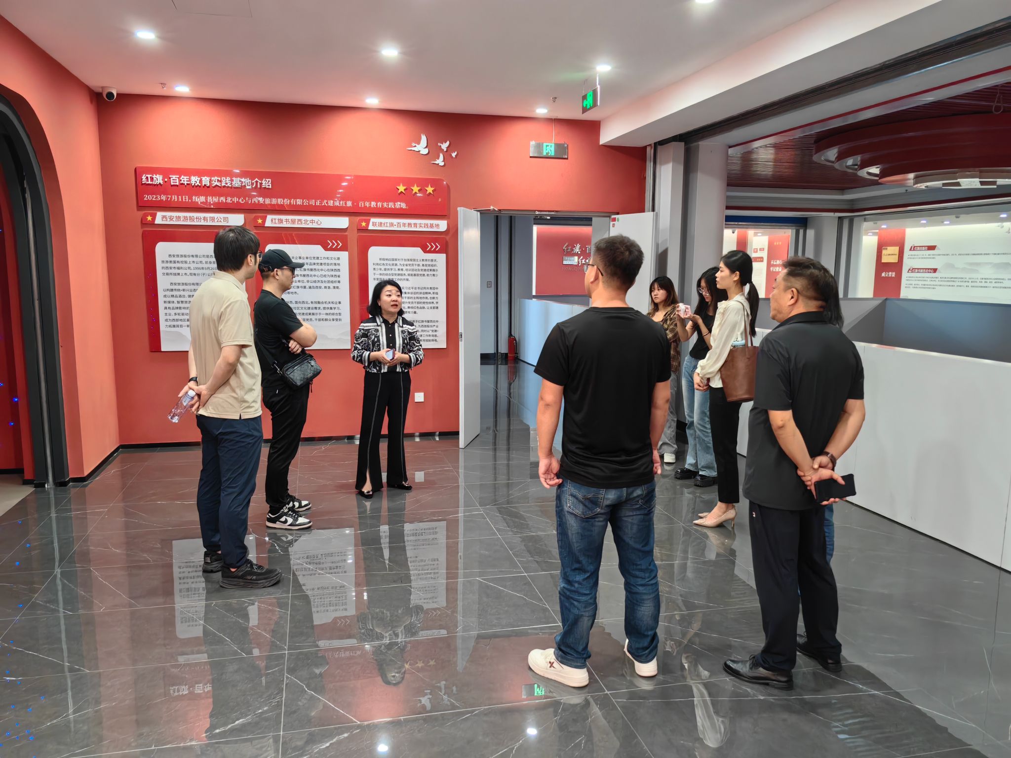 9月23日下午,历史文化旅游学院党总支委员袁博、旅游管理系主任刘世栋、副主任丁贵金、辅导员冉露露及学生代表调研西安中旅红旗·百年党建阵地,受到西安中旅公民中心总经理、红旗·百年党建阵地负责人罗瑞等热情接待。罗瑞首先带领师生参观了红旗·百年党建阵地的场馆建设情况,介绍了阵地的功能布局和教育意义,希望大家能深刻感受到红色文化的魅力与旅游产业的创新融合。袁博表示,红旗·百年党建阵地为基层党组织提供了学习平台,将在党建工作中发挥重要作用,...