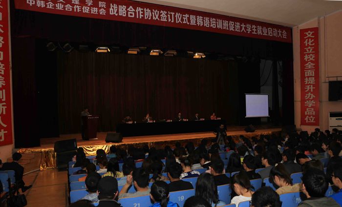 3月26日下午,我校与中韩企业合作促进会战略合作协议签订仪式暨韩语培训促进大学生就业启动大会在我校大礼堂举行。会议由副校长韩权主持,副书记、副校长李忠良、西安中韩企业促进会会长南征、韩国西安殷博绿空电子科...