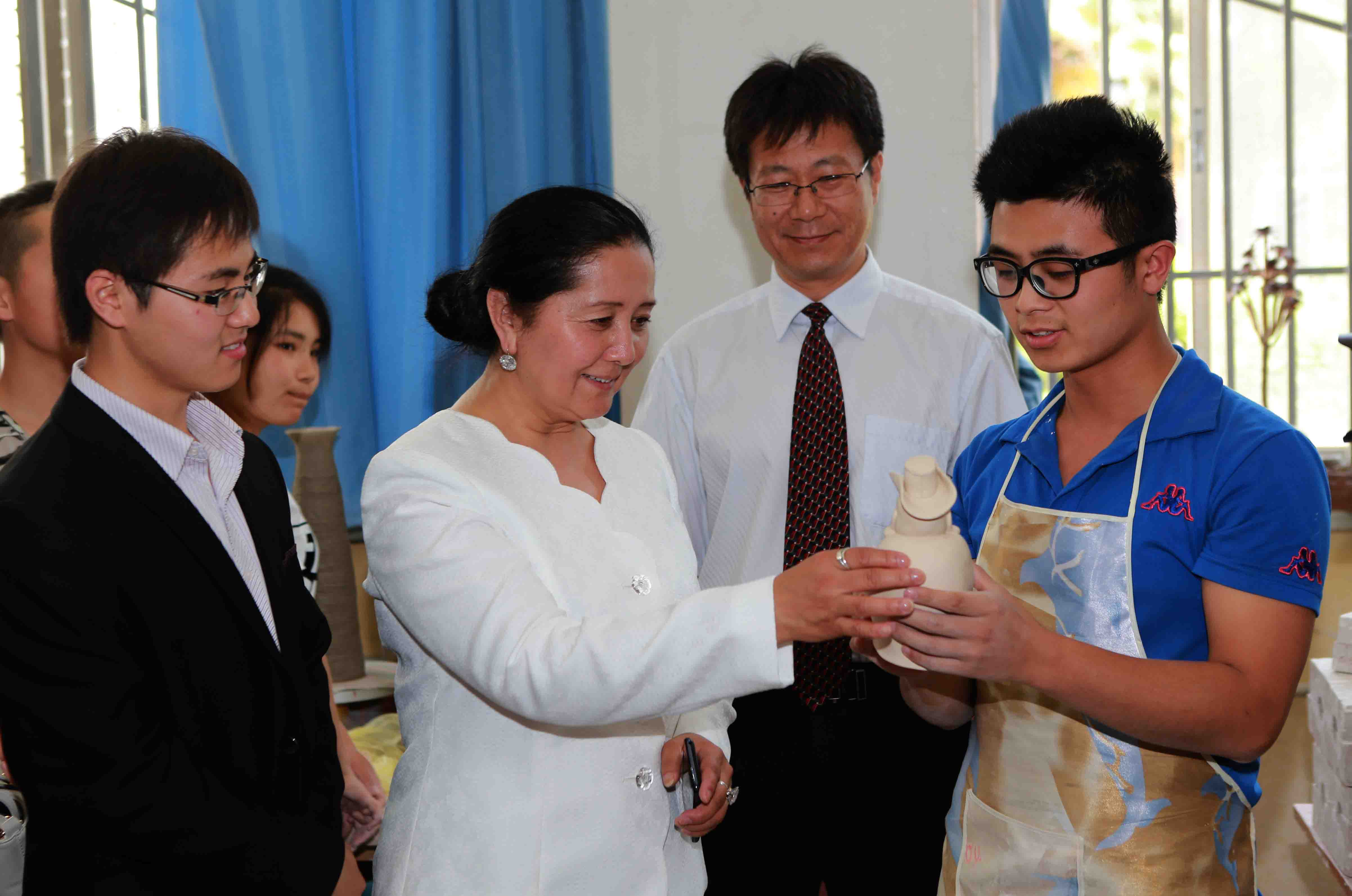 5月26日上午,台湾岭东科技大学副校长杨永列、校长秘书刘凯平一行来我校访问交流。校长徐可为、副校长耿占军、校务委员郭瑞等会见了来宾。杨永列一行参观了我校喻氏陶瓷馆、艺术学院陶艺工作室、艺术学院版画工作室,...