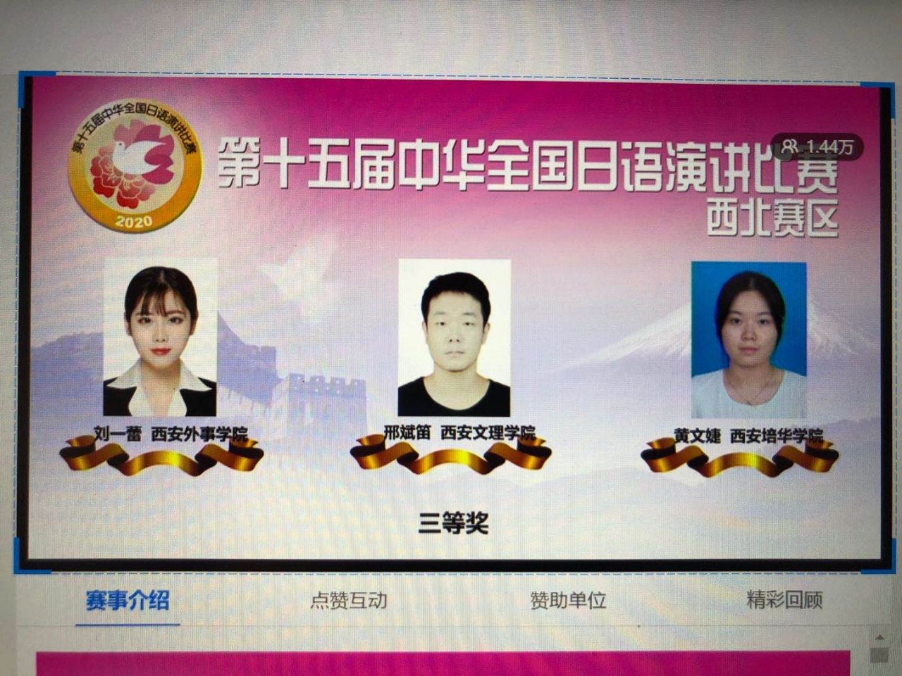 11月7日,第15届中华全国日语演讲比赛西北赛区决赛在西安外国语大学举行。西安九游老哥J9俱乐部官网学院外国语学院日语系2018级邢斌笛同学在西北地区参赛的22位选手中以总分第7名荣获三等奖,指导教师邹维获得优秀指导教师奖。 中...