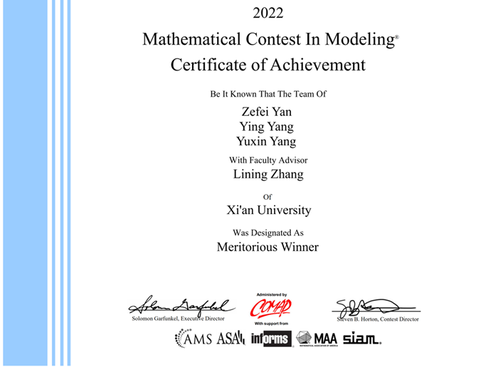5月6日,2022年美国大学生数学建模竞赛评奖结果揭晓,我校信息工程学院学生获得国际一等奖1项,国际三等奖2项。其中由数学与应用数学专业19级闫泽飞、18级杨雨欣、软件工程专业18级杨莹三位同学组队获得的国际一等奖...
