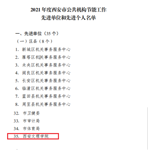 近日,西安市机关事务服务中心发布2021年度全市公共机构节能工作先进单位和先进个人名单,我校再次荣获全市公共机构节能工作先进单位。 近年来,我校按照“开发与节约并举,节能优先,效率为本”的原则,以认真贯彻《...