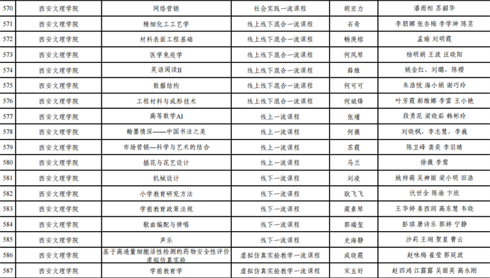 近日,陕西省教育厅公示了第三批拟认定的省级一流本科课程,我校18门课程获批,其中线上线下混合式一流本科课程6门、线上一流本科课程4门、线下一流本科课程5门、虚拟仿真实验教学一流本科课程2门、社会实践一流本科...