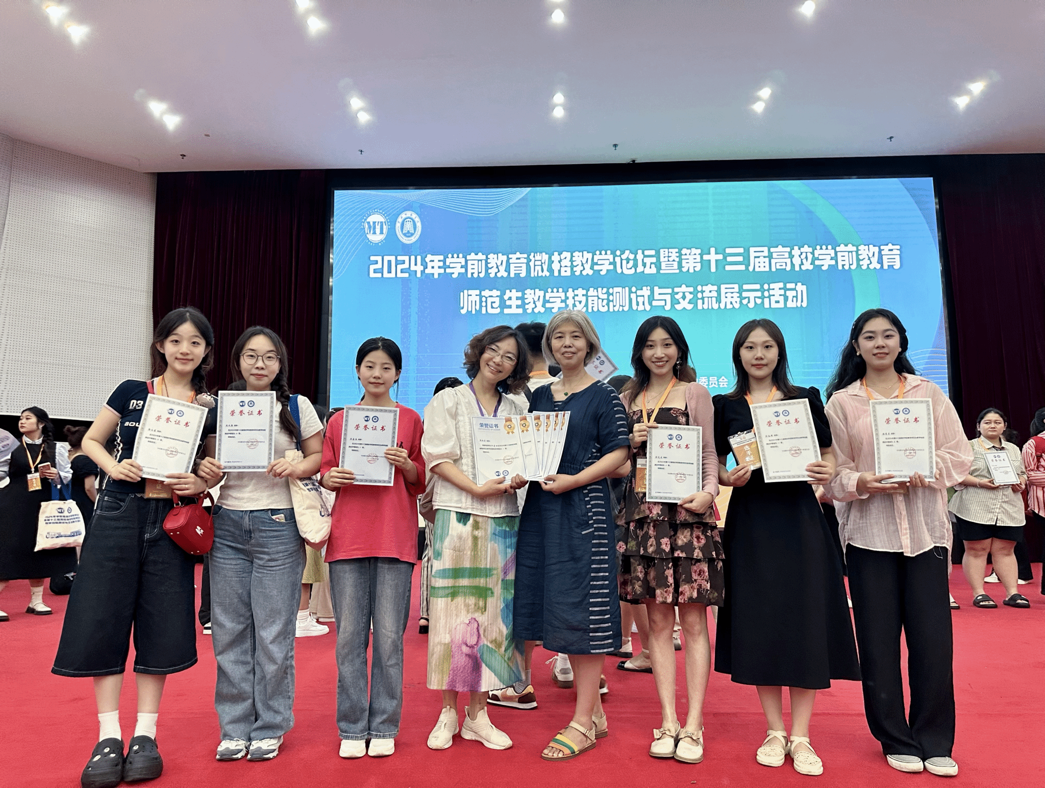 6月21—24日,2024年学前教育微格教学论坛暨十三届高校学前教育师范生教学技能测试与交流展示活动在黄冈师范学院顺利举行。来自全国65所高校的489名选手和指导教师参加此活动。在此次活动中,指导教师与学生们共同展现教学技能,将所教所学教育教学方法付诸实践。参赛选手通过老师的悉心指导,经激烈角逐,我校学前教育学院6名参赛选手取得优异成绩,其中获得一等奖3项,二等奖2项,三等奖1项。高校学前教育师范生教学技能测试与交流展示活动是展示专业人才培养质量、...