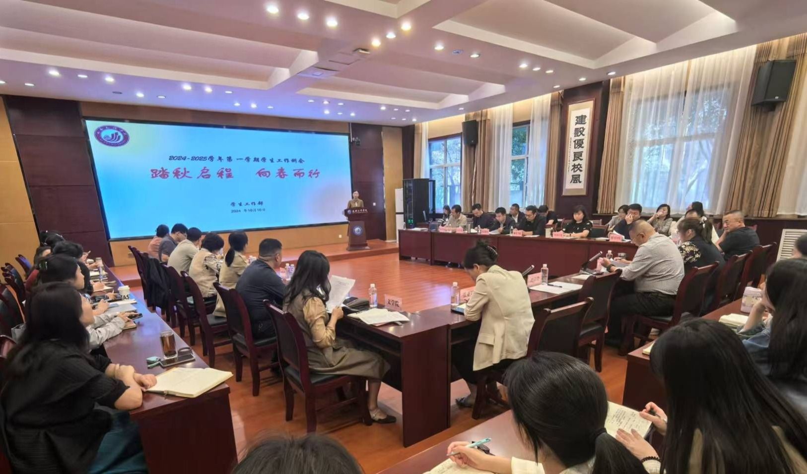 为使学校学生工作稳顺有序、创新高效开展,党委学工部以“精心筹划、精准发力、精细落实”三精原则,积极谋划本学期学生工作。10月10日下午,在办公楼一楼会议室召开“2024~2025学年第一学期学生工作例会。党委委员、副校长任晖出席会议并讲话。各学院党总支书记、分管学生工作领导,全体辅导员及学生处、团委全体干部130余人参加会议。会议由学工部部长刘倩倩主持。刘倩倩以“踏秋启程,向春而行”为题,总结了2024级新生军训工作,...