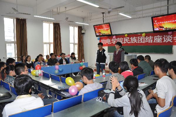 10月15日下午,物理与机械电子工程学院民族团结座谈会在明德楼C0410室召开。学校统战部、物电学院负责人、辅导员、少数民族学生及学生干部30余人参加了座谈会。 物电学院汉族学生高泽、张高骏为大家助兴演唱的一首民...