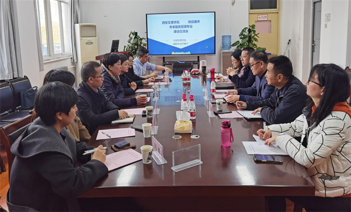 11月28日上午,陕投康养总经理王贇、副总经理彭琳、投发部经理任伟、企管部经理晋阳,君颐养老总经理杨琨、副总经理孙利敏,加拿大西安商务处冯赟一行七人来我院考察交流。经济管理学院院长闫荣国、党总支书记陈沛、副院长董冠华及养老服务管理专业教师参加此次会议。