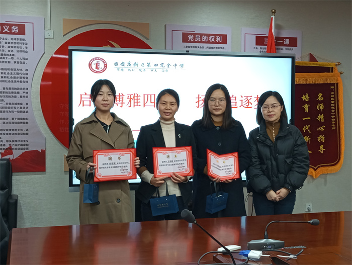 12月1日下午三点,化学工程学院教学副院长宋瑞娟、学生工作办公室副主任张莎和教育实习带队教师何亚萍一行三人赴西安市高新区第四完全中学参加实习生座谈及实践教学基地授牌活动。西安市高新区第四完全中学总务处主任高学、教务处主任任小妮、实习指导教师王维娟、刘鲜红和郭斐老师参加活动。会议由初三年级组教研组长王丹主持。