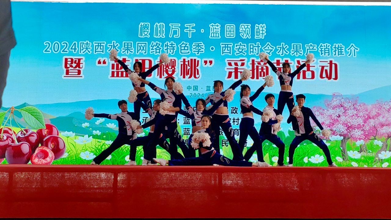 此次蓝田县樱桃节,体育学院“啦啦操队”作为我校代表,首个出场表演《青春的旋律》,迅速带动现场氛围,充分展现了大学生的风采和活力,不仅为樱桃节增添了艺术魅力,更是学校服务地方、定点帮扶的生动体现,进一步加深了学校与地方的文化交流与合作。