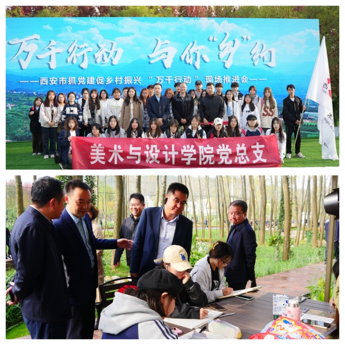10月9日上午,美术与设计学院党总支书记魏夫涛、教工党支部书记许雷、学生党支部书记呼潇、教师代表王婕弘等40余师生党员,受邀赴蓝田县前卫镇将军村参与西安市抓党建促乡村振兴“万千行动”现场推行会,学院结合专业特色,组织开展了“强党建·助乡村振兴”主题实践写生活动。