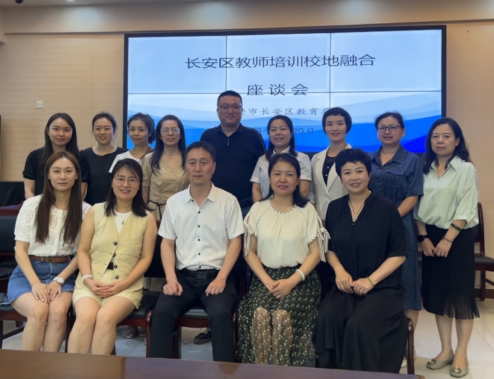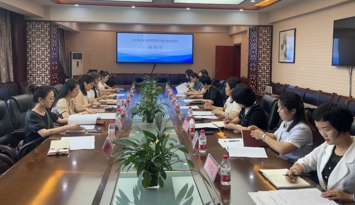 7月20日上午,师范学院与长安区教育局在长安一小举行长安区教师培训校地融合座谈会。区教师进修学校党支部书记、副校长郭环主持会议,区基教科科长谢宏斌、区教师进修学校培训处主任杨德梅,长安一小、二小、三小校长、副校长及师范学院副院长王雅荔教授,教师教育部主任陶琳副教授、应用心理学系主任彭源副教授、应用心理学系教研室主任吴国强博士、博士教师代表王君妍、柏洋、陈渝等参加会议。