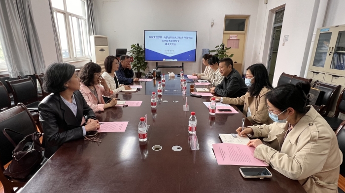 董冠华代表学院对李主任一行的来访交流表示欢迎。他介绍了我校养老服务管理专业成立背景、建设现状、发展规划等基本情况。李清波介绍了内蒙古科技大学包头师范学院经济管理学院筹办养老相关学科领域的情况。双方围绕养老服务管理专业建设、招生就业、师资队伍建设、社会服务与合作等问题进行了深入的研讨交流,并就共同做好养老相关学科建设与人才培养等方面达成了初步共识。