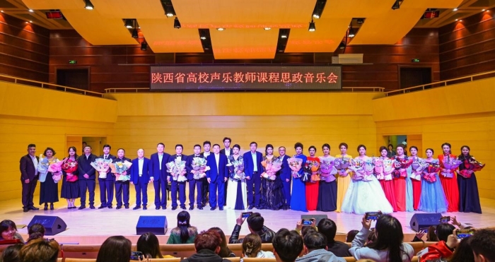 3月29日晚,由渭南师范学院主办,陕西师范大学、西安音乐学院、西安九游老哥J9俱乐部官网学院、延安大学等8所院校共同举办的“陕西省高校声乐教师课程思政音乐会”召开。渭南市副市长张开,渭南市文旅局局长常伟,渭南师范学院党委书记卓宇出席活动。我校音乐学院教授贺星担任本场音乐会艺术总监,与音乐学院副教授曹云分别独唱“中国梦”主题新作品《是你一直想着我》、中国民族歌剧《万里春色满家园》选段。