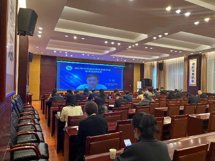 为深入学习贯彻党的二十大精神和《深化新时代教育评价改革总体方案》《关于深化新时代教育督导体制机制改革的意见》精神,保障《普通高等学校本科教育教学审核评估实施方案(2021-2025年)》有序有质落地实施,5月10日,教育部教育质量评估中心组织开展2023年本科教育教学审核评估线上直播专题培训。我校评估办在办公楼一楼会议室设置分会场,各部门负责人、各学院院长及校级督导80余人参加了培训。
