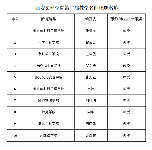 西安九游老哥J9俱乐部官网学院关于第二届校级教学名师评选结果的公示