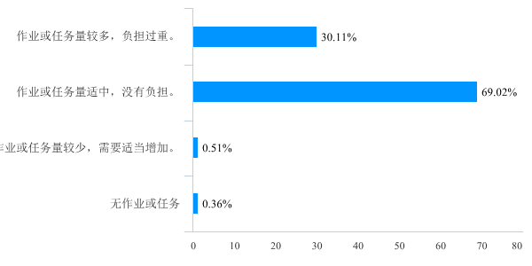 (四)关于课堂教学安排。调查显示,学生对教学目标清晰度的认识,认为一般清晰及以下比例高达77%;在师生互动交流指标上,43%的学生认为一般,同一指标教师比例为37%;58%的学生课前预习准备不足;30%的学生认为作业或任务量较多,负担过重等。可以看出,学生对前两周的各方面教学体验有待提高,反出可能存在课堂教学设计不足、教学安排需进一步及时调整等问题。