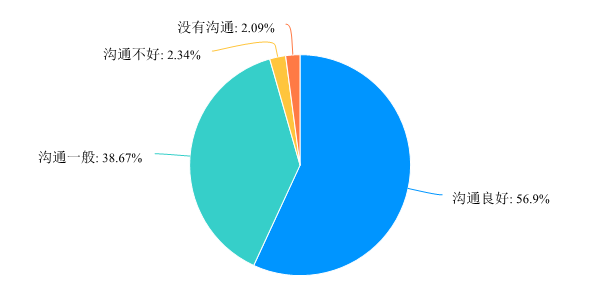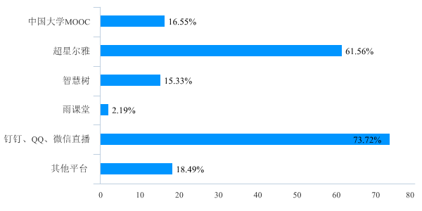 学生调查结果显示,与线下课堂教学相比,89.83%的学生认为老师线上教学的安排合理,86.86%的学生认为线上教学的课程目标及学习任务很清晰,84.44%的学生认为课程资料比较完备,86.37%的学生认为老师安排了合理的线上答疑或讨论,73.73%的学生认为老师比较了解学生在线学习的实际情况和学习效果,69.02%的学生认为作业或任务量适中,没有负担,56.9%的学生认为与教师沟通良好,63.89%的学生认为线上教学效果比较好。