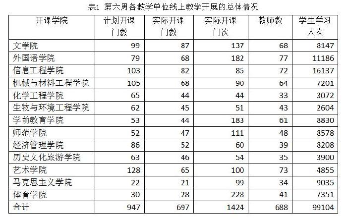 自2月24日以来,我校2020年春季学期线上教学已开展六周。在校党委正确领导和广大师生共同努力下,新学期线上教学工作总体上运行平稳、有序进行。现将截止4月3日的线上教学运行情况总结如下: