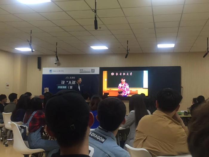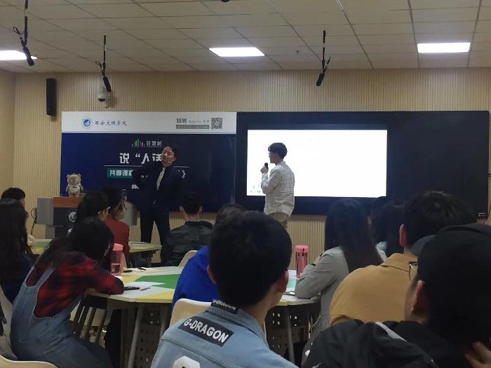 其后,现场与分会场牡丹江大学、运城学院、西安交通大学进行跨校互动,每所互动学校由一名学生向胡刚老师解释一个专业名词。西安九游老哥J9俱乐部官网学院的同学向老师解释“AutoCAD”,西安交通大学的同学向老师解释边际成本,牡丹江大学的同学解释了专业词汇像素,而运城学院的同学选择的是封装,面对面进行了实战演练沟通。脑洞大开、花样百出的同学们和胡刚老师出彩的回答让课堂气氛异常活跃,引起了同学们的热烈反响,现场掌声不断。