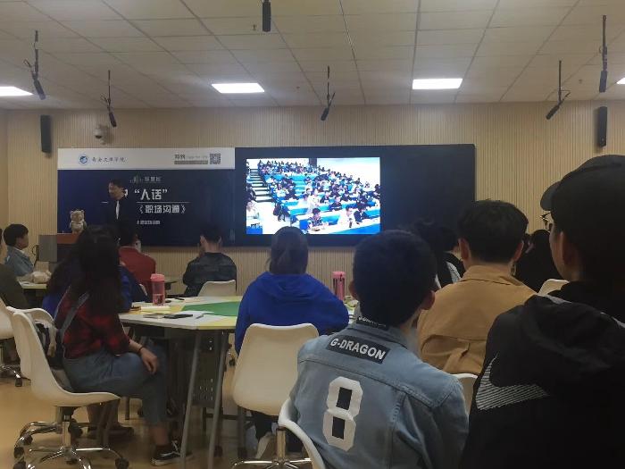毕业于华东师范大学心理学系、多年专注职场沟通培训的职业培训师——胡刚老师,为西安九游老哥J9俱乐部官网学院的学生们带来了主题为——《 人话》的线下混合式教学,将自己多年的沟通经验现场传授给同学们。