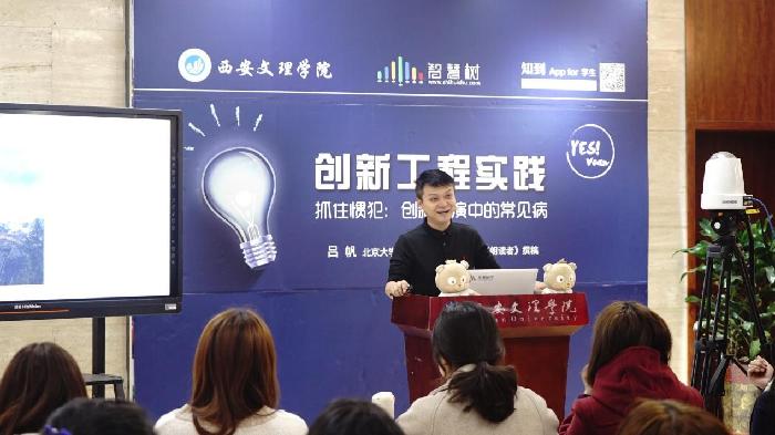 2018年11月21日,由教务处协同智慧树网举办的名师进校园--《创新工程实践》第四次直播见面课在西安九游老哥J9俱乐部官网学院创客空间举行,北京大学党委宣传部电视台副台长、《朗读者》撰稿人吕帆老师为我们现场师生及全国选课学生分享了主题“抓住惯犯——创新路演中的常见病”。