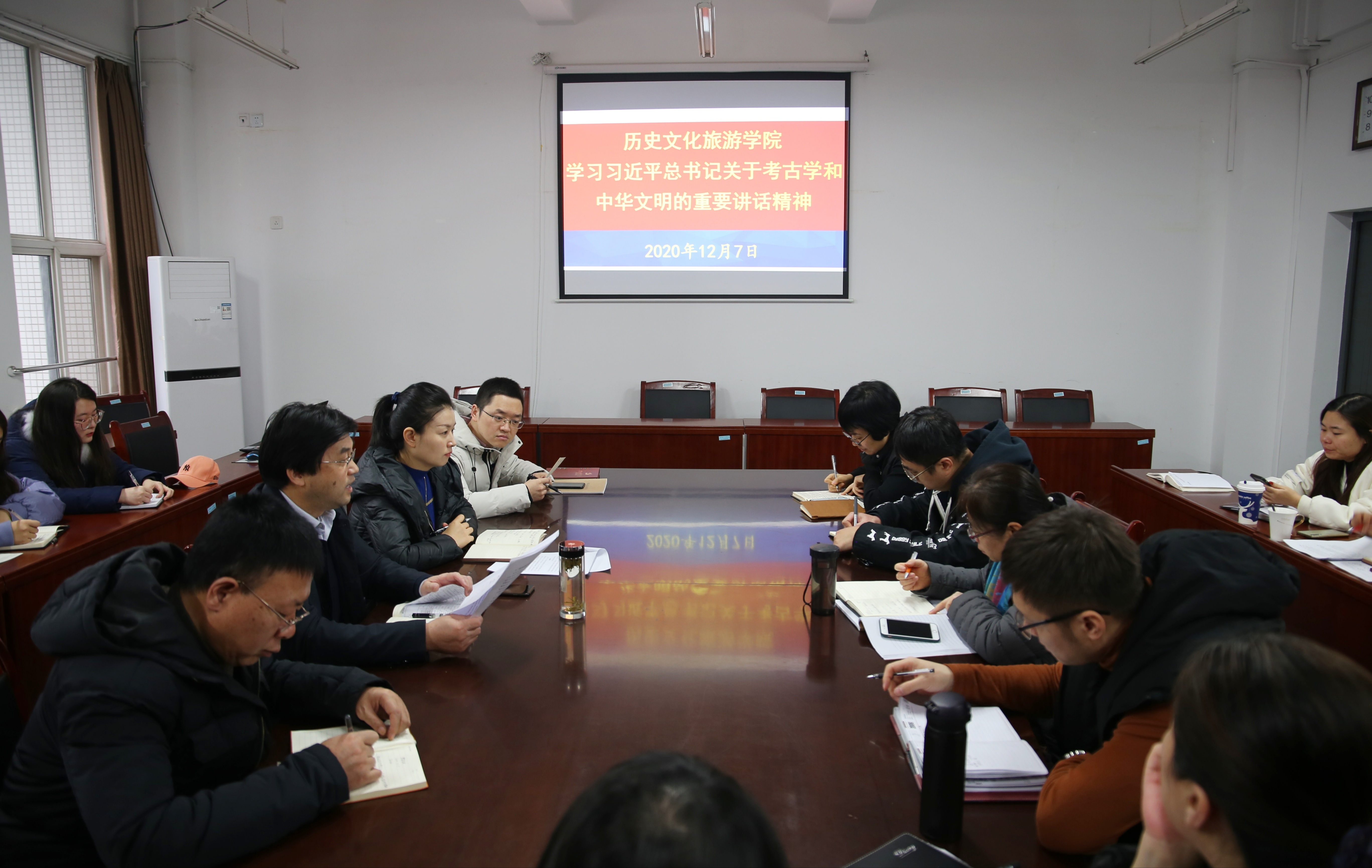 按照校党委书记问向荣批示,12月7日上午,历史文化旅游学院召开专题学习会,学习习近平总书记《建设中国特色中国风格中国气派的考古学 更好认识源远流长博大精深的中华文明》的重要讲话。学院领导班子成员,院党总支委员,教工及学生支部委员,各系、办、中心负责人等参加学习会,院长张天社主持会议。