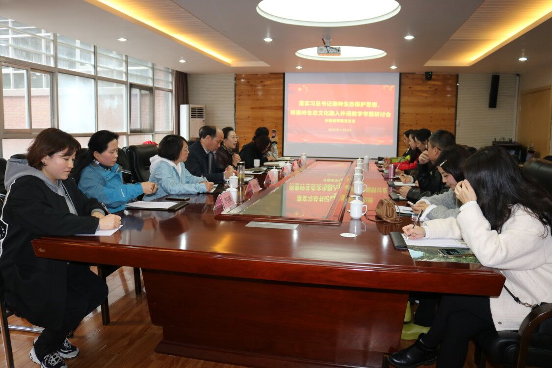 与会各系部主任,支部书记以及支委老师均结合自身的教学实际,做了精彩的发言,特别就将课程思政以及秦岭生态文化融入教学,提出了许多建设性的意见和建议,最后王书记在总结中提出了三条意见和建议:一是继续深入学习贯彻落实习近平总书记来陕讲话,加强课程思政建设,把思想教育弘扬社会主义主旋律,融入教育教学和育人全过程,培养具有家国情怀的社会主义建设者和接班人;二是发挥外语人的优势,将秦岭生态文化保护融入课堂教学,充分利用学生大创项目以及参与省市涉外活动志愿者服务的机会,传承好,宣传好秦岭生态文化,深入挖掘与秦岭生态文化相关的人和事,讲好秦岭故事。下学期学院将召开课程思政建设专题会议,展示一批课程思政建设优秀案例,各党支部要以此为契机,抓好师德建设,促进立德树人工作,每个支部从现在开始,要深入挖掘本支部在课程思政建设方面的典型案例和教师,树立一批先进典型,孵化一批课程思政课题和科研项目。