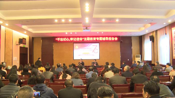 为深入推进“不忘初心、牢记使命”主题教育,不断增强学校党员领导干部的综合素质,切实提高人才培养质量,按照学校“不忘初心、牢记使命”主题教育总体部署,10月24日下午,校党委书记问向荣为全校处级以上领导干部讲授了题为“新时代教育的使命担当”专题党课。市委“不忘初心、牢记使命”主题教育第二巡回指导成员王军、王蕾列席报告会。专题党课由党委副书记、校长陈刚主持。