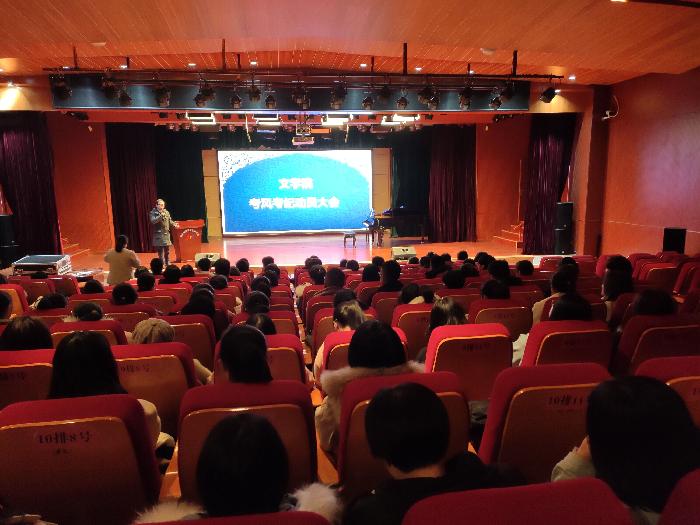 为进一步严肃考风考纪,加强学风建设,营造文明考试、诚信作答的考试环境,12月10日下午,文学院召开了“文学院2019-2020学年第一学期考风考纪动员大会”。文学院200余名学生参加。文学院党总支副书记李莎莎主持会议。