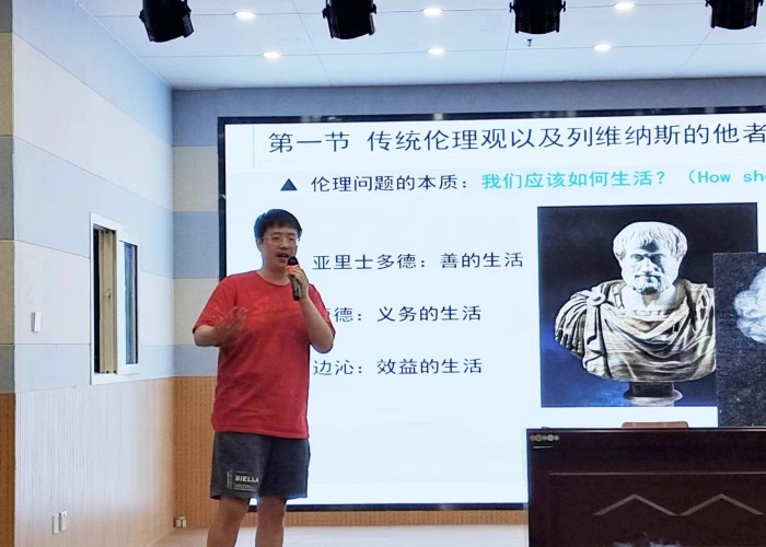 毕晓为华东师范大学思勉人文高等研究院博士,伦敦大学玛丽女王学院联合培养博士,研究领域为政治哲学。讲座以文学的伦理性为切入口,从“传统理论观以及列维纳斯的他者伦理转向”、“列维纳斯的伦理外在性”、“缺乏外在性的文学”、“文学丑角的外在性特质”四个方面阐述了“文学是否还具备伦理功能”,文学在当代的伦理困境及突破的可能性。在交流互动环节中,同学们积极提问,毕晓细致地解答,在座同学都受益匪浅。