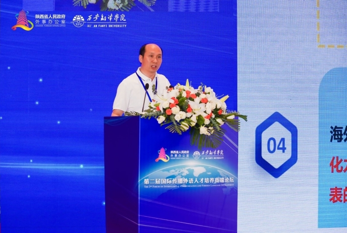 7月8日,由中共陕西省委外事工作委员会办公室与西安翻译学院联合举办的“第二届国际传播外语人才培养高端论坛”在陕西宾馆举行。我校外国语学院4名教师参加了此次高端论坛,院长韩红建教授在主会场作了题为“复杂系统视阈下的贾平凹作品英译与国际传播研究”的主旨发言,系统梳理和阐释了陕西文学海外英译与国际传播的思路与路径。