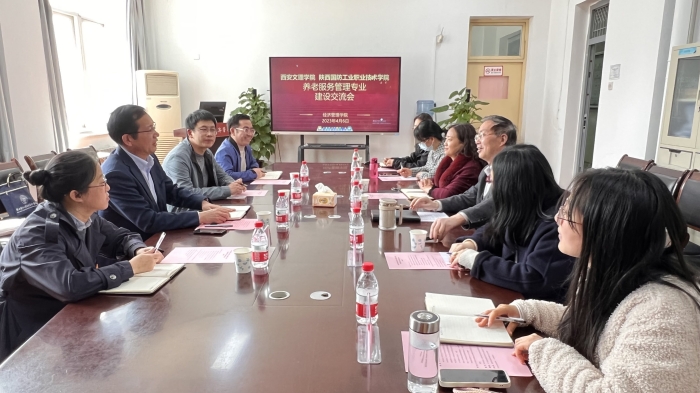4月6日下午,陕西国防工业职业技术学院经济管理学院院长严长远、教学科科长徐松、办公室主任李志春、智慧健康养老服务与管理专业负责人谈笑一行四人来经济管理学院考察交流。经济管理学院院长刘鸿明、党总支书记杨燕华、副院长董冠华及养老服务管理专业全体教师参加座谈。