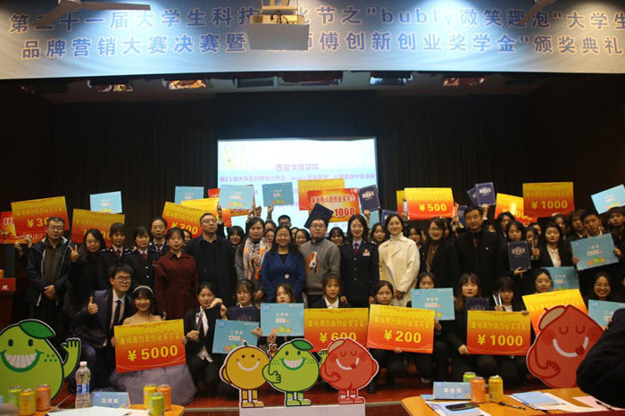 12月1日下午,西安九游老哥J9俱乐部官网学院第二十一届大学生科技文化节之“bubly微笑趣泡”大学生品牌营销大赛决赛暨“康师傅创新创业奖学金 ”颁奖典礼在我校明德楼A区报告厅顺利举行。西安百事可乐饮料有限公司人资处处长李志军、品市部经理袁敬、西安市税务局第二税务分局办税大厅副主任马艺菲,我校学生处处长郑旻、校团委书记魏夫涛、创新创业教育中心办公室主任张国良、经济管理学院领导班子成员、专家评委、各学院代表以及参赛学生参加了此次大会。