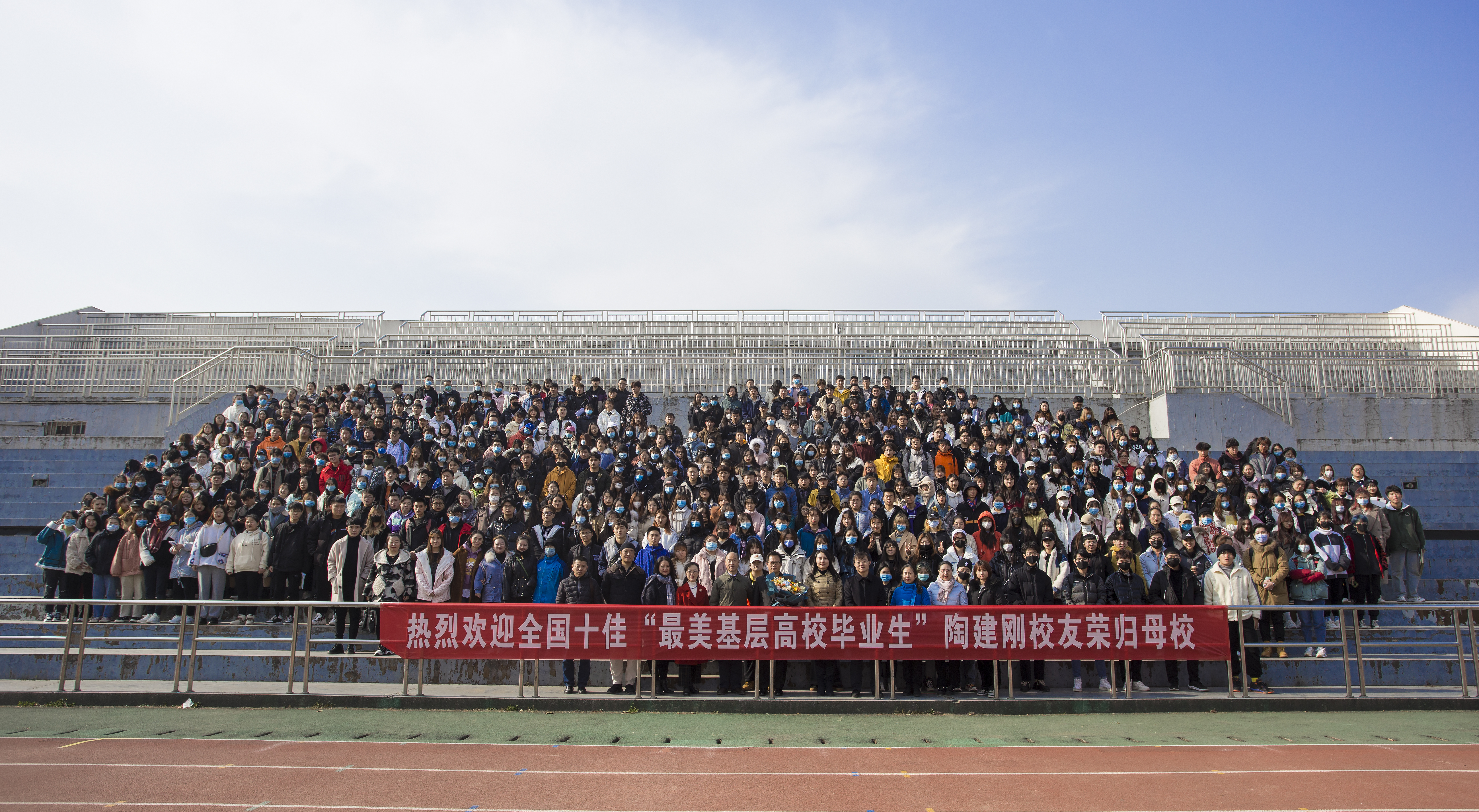 12月10日中午,由学校党委宣传部、招就处、学生处、团委联合主办、艺术学院承办的“全国十佳‘最美基层高校毕业生’陶建刚校友荣归母校师生见面会”在学校东操场举行。学生处处长郑旻、团委书记乔新、党委宣传部副部长曹贤姿、艺术学院师生代表及其他兄弟学院代表共1600名师生共同参加,活动由艺术学院党总支书记李晓煜主持。