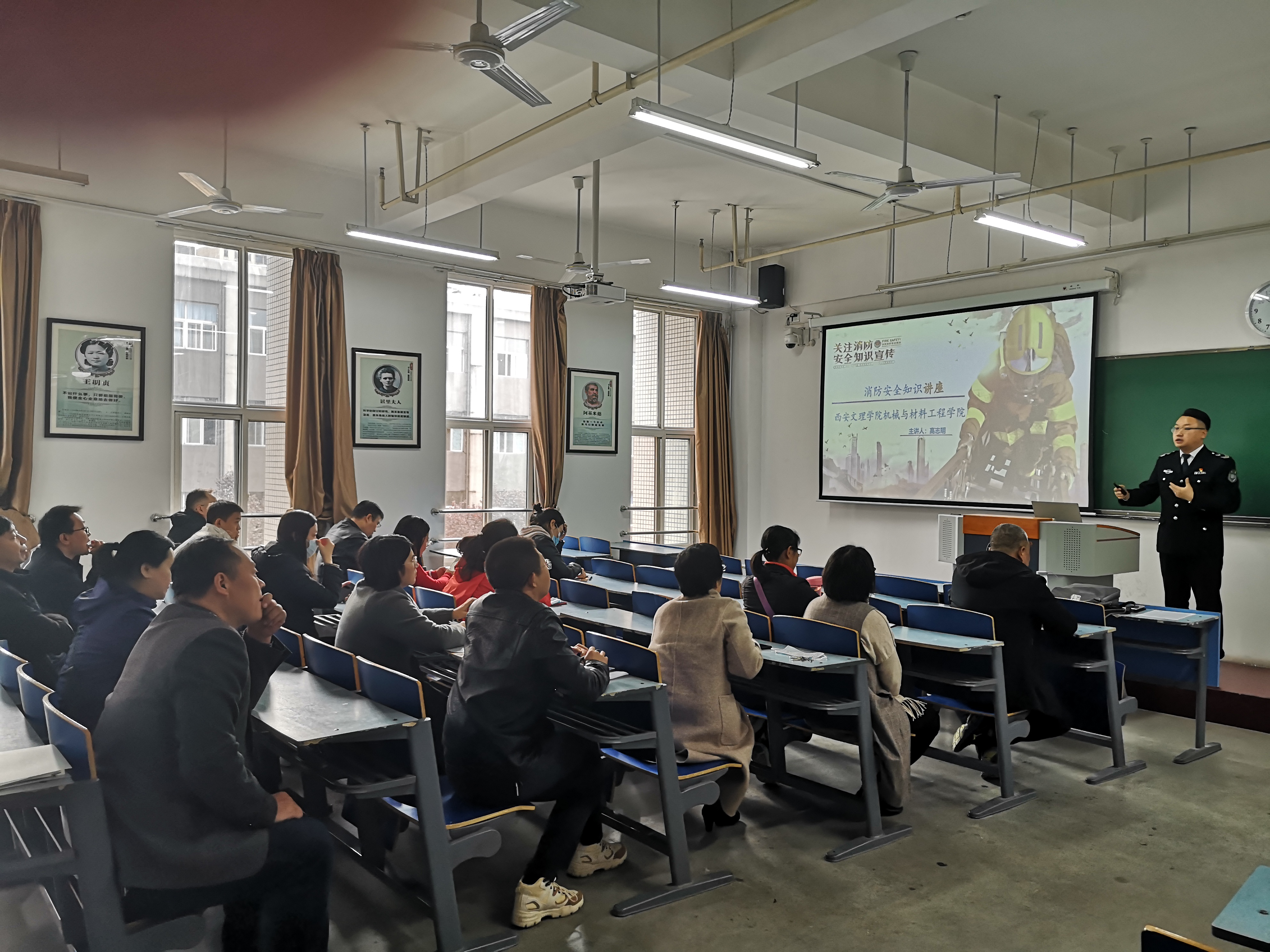 10月28日下午,机械与材料工程学院邀请陕西山西消防志愿者杰出青年,安全健康教育网陕西站及北京卫民安消防教育咨询中心陕西山西分中心优秀讲师高志明老师,为学院全体实验员,实验实训中心、党政办、学工办主任及各系、各部门安全信息员(消防志愿者)共计20余名教职工进行消防知识培训及消防演练指导。学校保卫处副处长屈勇及消防与技防科刘宝军老师应邀参加活动。活动由机械与材料工程学院副院长边培莹主持。