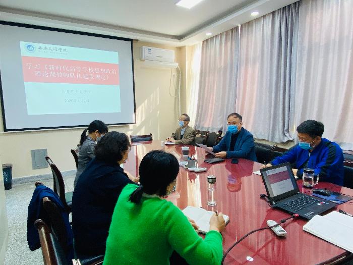4月9日,马克思主义学院召开会议,集中学习《新时代高等学校思想政治理论课教师队伍建设规定》(简称《规定》)等文件精神,就疫情期间加强思想政治课线上教学,加强思想政治课教学改革,加强思想政治课教师队伍建设展开深入研讨。院长张军学主持会议,总支书记薛斌等在主会场参加会议,其他人员以网络视频方式参会。