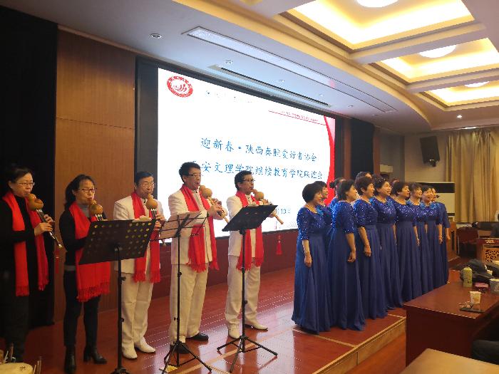 联谊会上,老年大学学员表演的小合唱《望月》、葫芦丝二重奏《十送红军》、朗诵《我和我的祖国》、《赛江南》等精彩节目,展现了学员们热爱生活,积极向上的精神风貌和时代风采,体现了我校服务社会的办学定位。陕西秦腔爱好者协会深沉高亢的戏曲表演也赢得了台下观众的阵阵掌声。