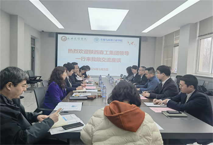 3月5日下午,陕西森工生态环境工程集团有限公司董事长、总工张磊,副董事长王刚等一行6位赴生物与环境工程学院开展产学研合作交流座谈。九三学社陕西省省委青工委副主委、中铁一局生态资源建设指挥部副部长薛祺作为特邀嘉宾出席了本次座谈。学院党总支书记张九东,副院长王子见、田爱梅,环境生态工程专业负责人赵敏娟以及专业教师代表参加了本次座谈,会议由王子见主持。