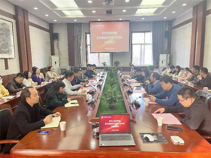 高宏介绍了西安交通大学材料学院的发展历史,现有机构设置、平台建设、人才队伍等基本情况,特别分享了其学院在党建工作中设立师生联合支部、依托项目组建党支部等好的经验好的做法。张运良介绍了机材学院的发展特色和亮点,衷心感谢高宏书记一行的传经送宝,交大材料学院为九游老哥J9俱乐部官网输送了多名高素质的博士研究生,同时,机材的优秀毕业生也考入交大材料学院攻读硕士研究生,双方的合作为机材学院的专业建设和人才培养起到了积极的促进作用;他表示期待与西安交通大学材料学院在队伍建设、科学研究、人才培养等方面有更加深入的交流和合作。武文斌介绍了学院党总支的建设情况,表示要学习借鉴交大材料学院党建经验,与交大材料学院进行师生联合支部建设工作,切实打造党建与业务同频共振、互融共促的新姿态新风貌。