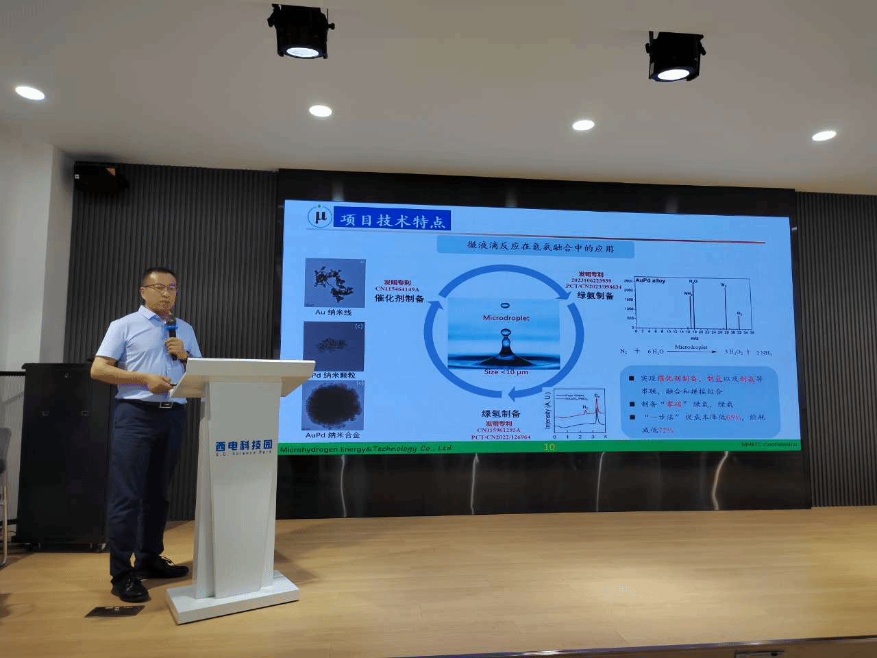 在高价值专利成果发布环节,化学工程学院骆凯博士发布了其团队的最新成果“氨-氢融合新能源高价值专利项目”。该成果主要针对氢能源体系中“储和运”的技术难题,结合国家科技政策导向,面向西安市氢能产业政策,在氨-氢融合新能源方面,布局申请了7项发明专利和2项国际PCT,其中涉及水制绿氢生产,氮气和水反应绿氨制备,C1气体(CO2、CO、CH4)绿色转化等。该项目申报的高价值专利成果在氢能源领域具有广阔的应用前景和潜力。