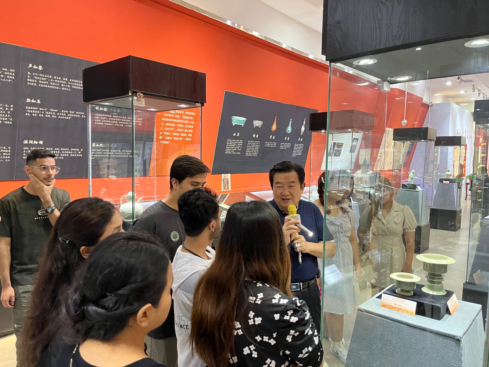 在博物馆里,留学生们近距离参观了诸多精美的陶瓷展品。在馆长王学武的详细讲解下,他们不仅欣赏到了文物之美,还领略到了柴窑文化的博大精深。王学武耐心地回答了留学生们的各种提问,介绍了柴窑的制作工艺、历史背景及其深厚的文化内涵。留学生们表现出了浓厚的兴趣和好奇心,纷纷表示此次参观活动让他们大开眼界,更加了解和热爱中国文化。