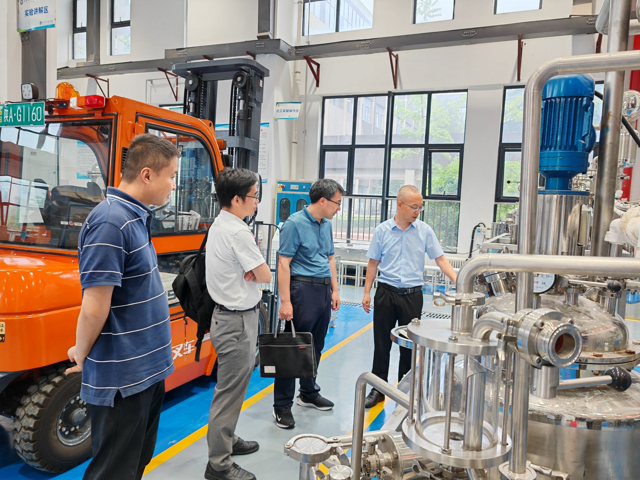 翟云会和刘振陪同师院长一行参观了学院精细化学品研发中试基地、检验检测中心、基础实验室等教学、科研场所,并详细介绍了实训条件、实践教学模式、配套的相关实验设施等。