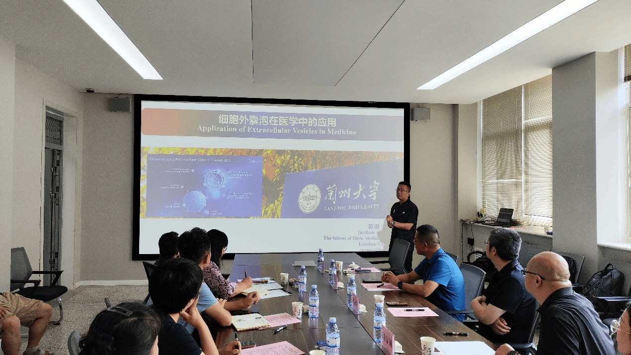签约仪式完成后,兰州大学基础医学院遗传所、兰州大学医学遗传中心李培强副教授,苏刚副教授分别以“人诱导多能干细胞在疾病研究和治疗中的应用”和“细胞外囊泡在医学中的应用”为题目进行学术报告。学院师生分别就iPSc与外泌体技术在自己研究领域的应用和与会专家进行了热烈的讨论与交流。