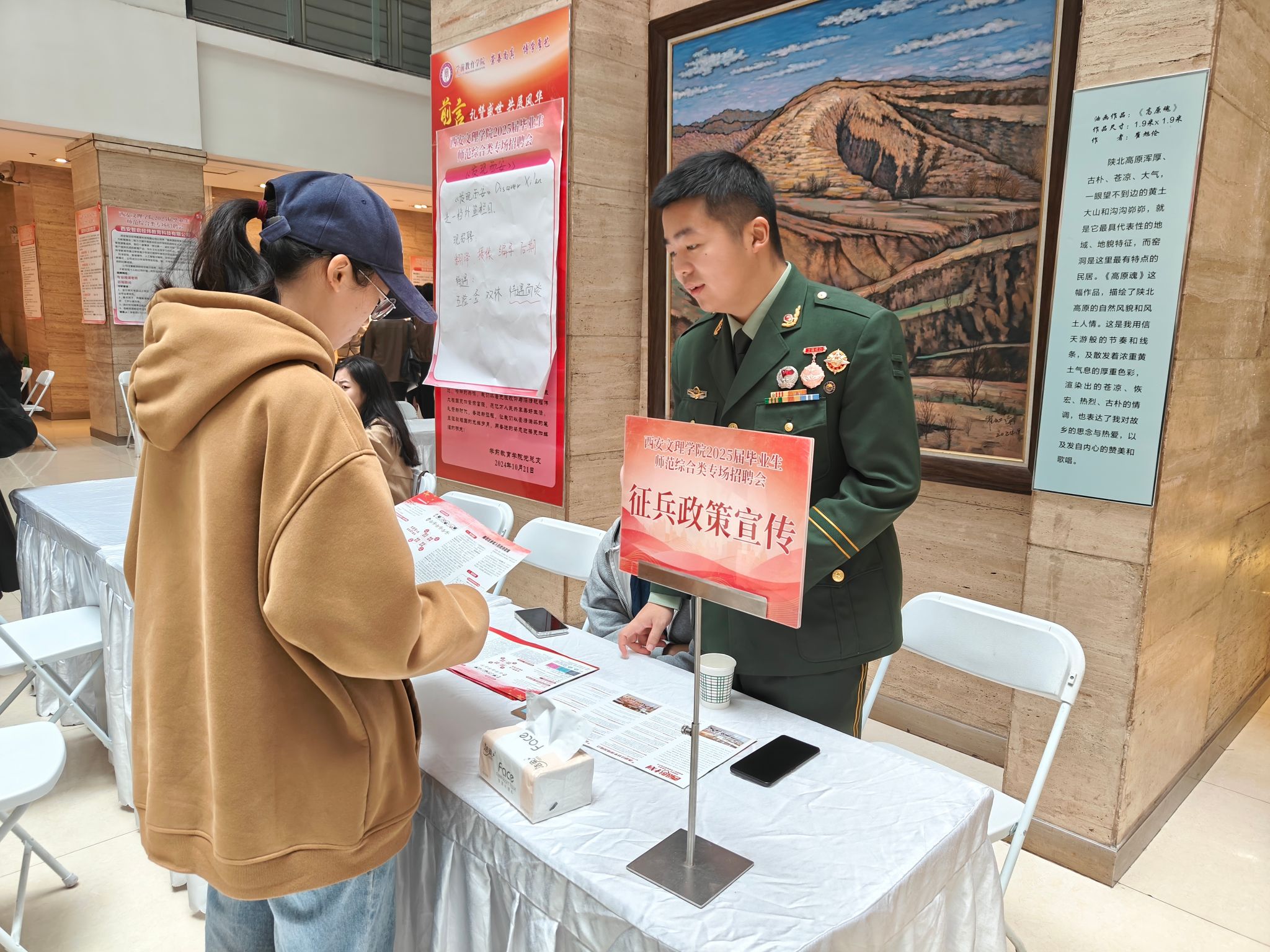 同时,招聘会现场还设置了包括“征兵宣传”、“简历门诊”等在内的多个功能区,为毕业生同学们提供全方位的招聘会服务。在“征兵宣传”专区,我校优秀退伍学生手持征兵政策宣传手册,为有意征兵入伍的同学,介绍入伍政策和发展前景,让毕业生同学深入了解不同就业渠道。