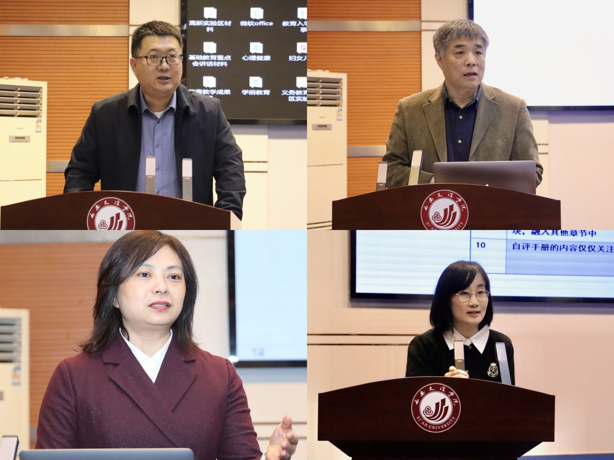 洋县幼儿园、汉中市幼儿园、乾县第一幼儿园和陕西师范大学实验幼儿园四所样本园,分别就数字化自评系统的应用情况进行了详细汇报。内容涵盖了系统推进的具体情况、克服的主要困难、评估的成效、当前面临的困惑以及未来的工作规划。项目组核心成员杨琼解答了样本园在实施自评过程中遇到的问题;赵四鸿代表项目组对下一步工作开展进行了安排和部署。