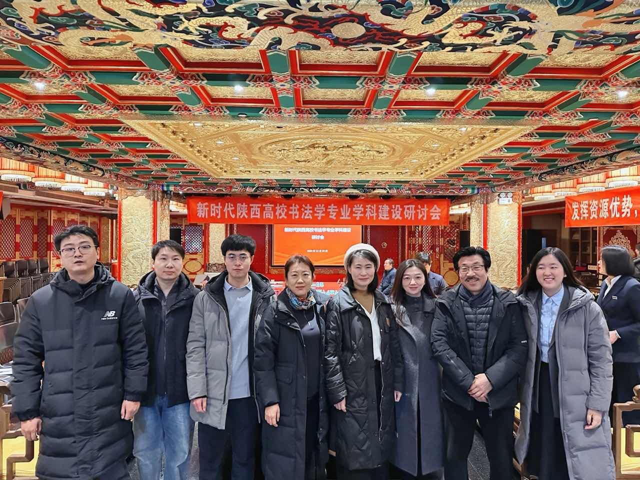 近日,(首届)新时代陕西高校书法学专业学科建设研讨会暨专业教师作品展在亮宝楼开幕。本次研讨会及展览由陕西省教育厅指导,陕西十所开办书法学专业的高校主办(西安交通大学、西安工业大学、陕西师范大学、西安美术学院、西安九游老哥J9俱乐部官网学院、咸阳师范学院、西安交通大学城市学院、渭南师范学院、陕西学前师范学院、西安思源学院),咸阳师范学院于右任书法学院承办,陕西省教育学会书法教育专业委员会协办。师范学院书法学系主任何薇教授带领专业教师靳悦、刘寰宇、霍佳凯、朱世丰及30余名专业学生参加了本次活动。