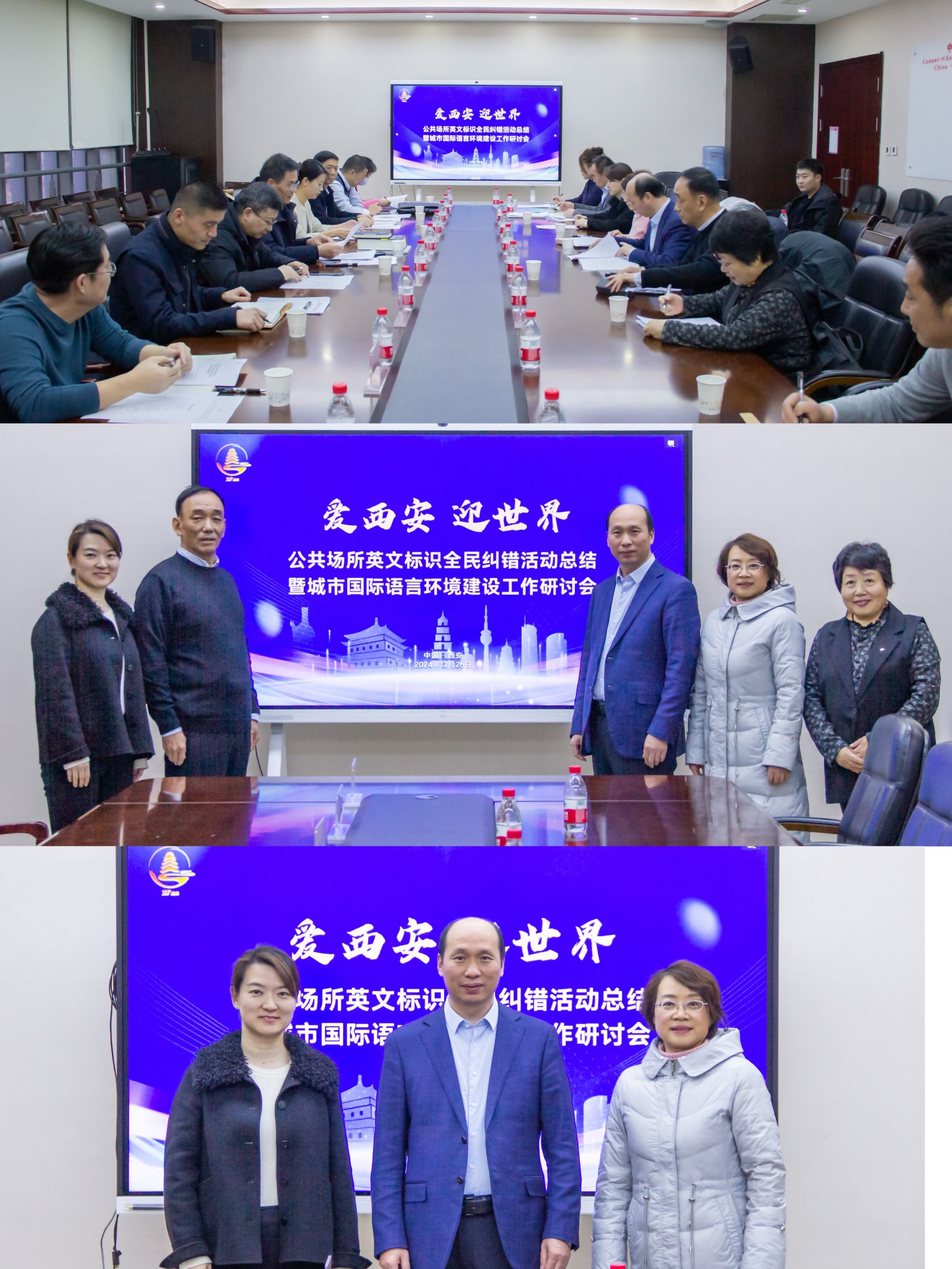 为优化全市国际语言环境,进一步提升城市精细化管理与服务水平,助力国家中心城市和国际化大都市建设,更好地服务中国-中亚峰会、丝博会、欧亚经济论坛等国家和城市重大活动,12月26日下午,“爱西安 迎世界”公共场所英文标识全民纠错活动总结暨城市国际语言环境建设工作研讨会在市委外办二楼会议室隆重召开。市委宣传部、市外办、市教育局等市属单位、高校专家代表、我校外国语学院院长韩红建、杨红梅教授等出席研讨会。会议由市对外友好协会专职副会长张勇主持。