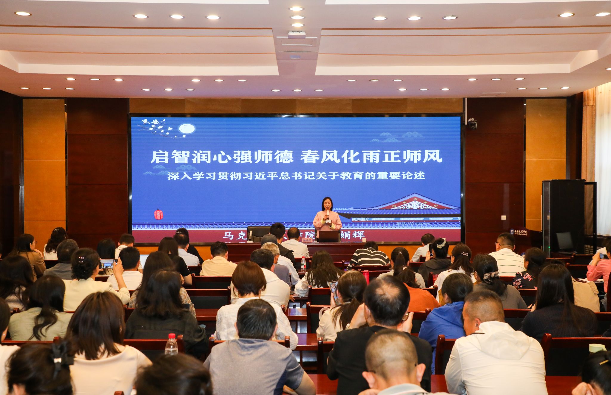 4月28日下午,学校在办公楼一楼会议室举办深入学习贯彻习近平总书记关于教育的重要论述专题辅导报告会,我校马克思主义学院副教授魏娟辉做题为“启智润心强师德 春风化雨正师风”的报告。党委委员、副校长刘明利主持报告会。